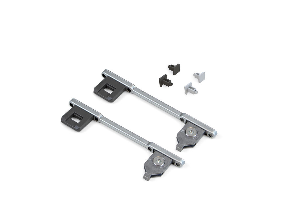 The 185mm high hooks are specially designed for double grip, providing extra firmness and security on the front panel support to the drawer sides. These work with the Concept drawer model and are manufactured with two variants where the fixing system changes, one consists of the use of screws and the other system is by applying direct pressure to the front panel. They are made of steel and their aesthetic finish is zinc plated so it is shiny.