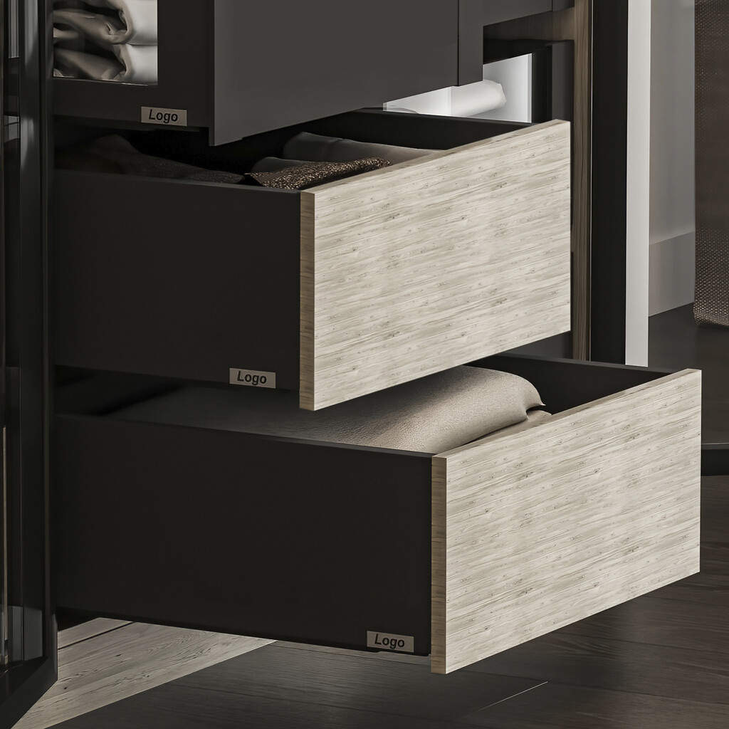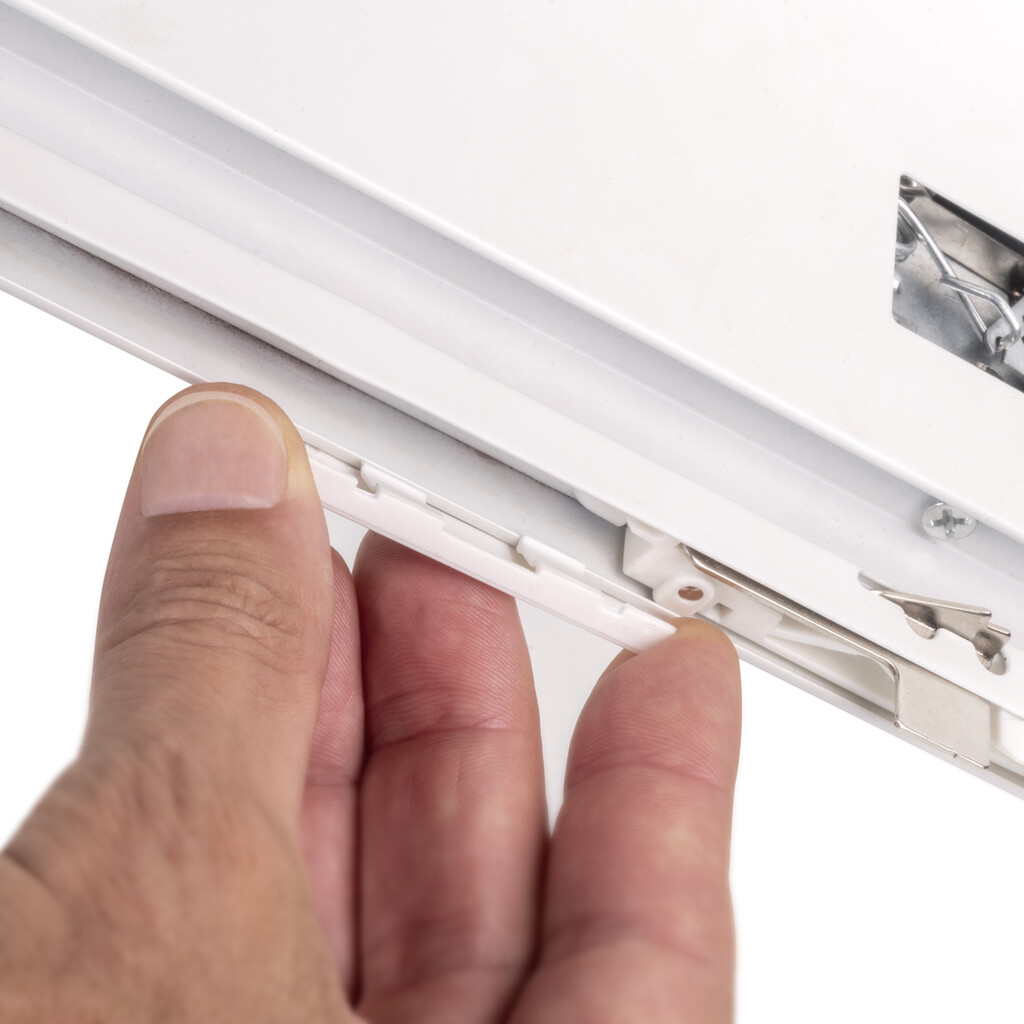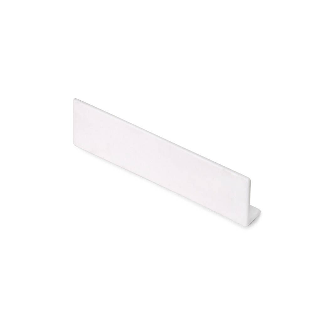 Snap-in tile for creating a label on a drawer. It is suitable for both the right and left side of the drawer. Installation is very simple. Made of polypropylene, it is available in white, grey, and anthracite grey.