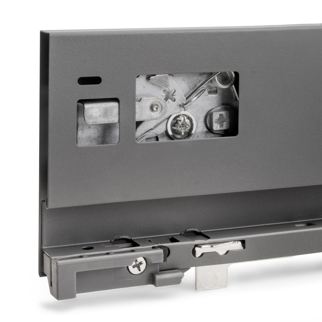 The Protone drawer for kitchens and bathrooms is available as a kit with all the necessary components for its assembly. It also stands out for its high durability, as it can support up to 30 kg per drawer. It includes full-extension runners with a soft-closing system, a set of hooks, and sides available in white painted or anthracite grey finish. You will only need the panels cut to the correct dimensions for the bottom, the back, and the front of the drawer.