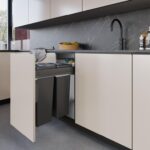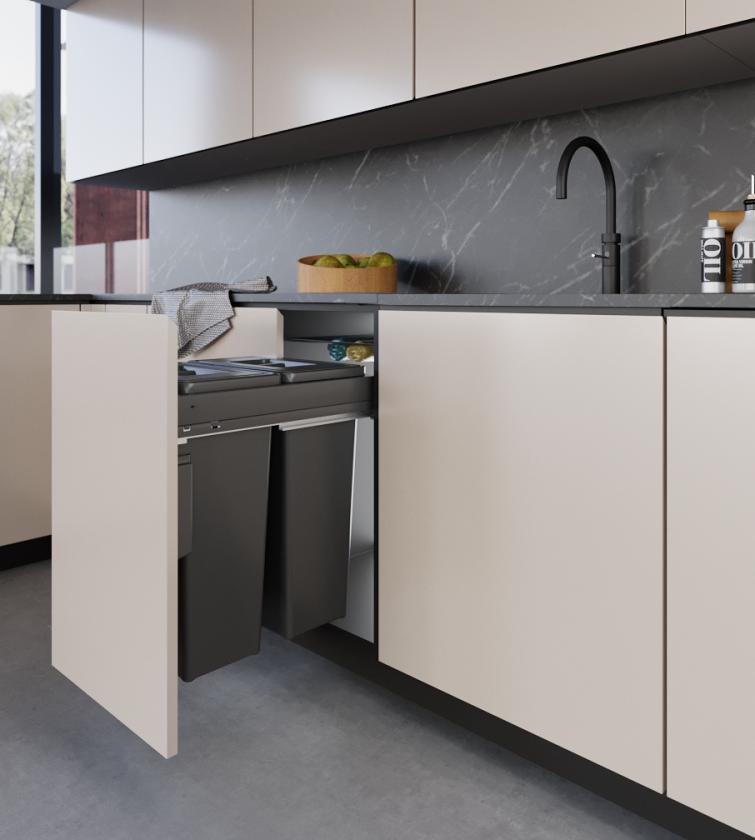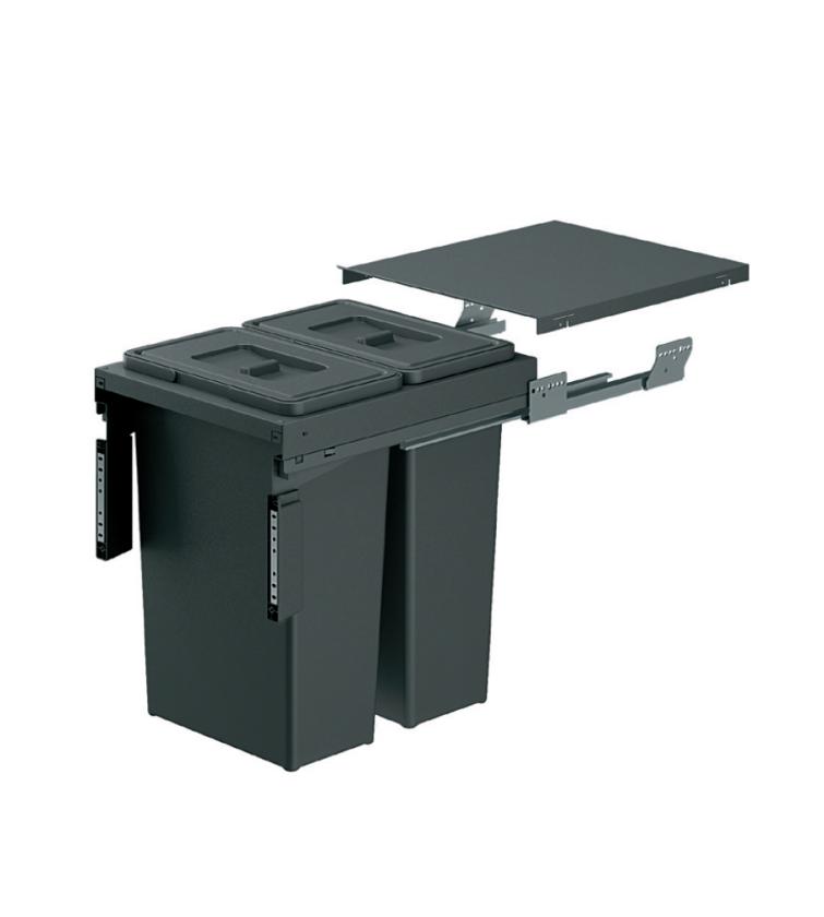 - Waste bin with door-mounted support and manual extraction, with a total capacity of 35 L across both containers.