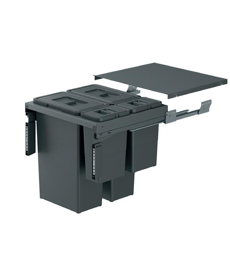 • Κάδος απορριμμάτων με στήριξη στην πόρτα και χειροκίνητη εξαγωγή. Η  χωρητικότητα και των δοχείων είναι δύο 35lt και δύο 8lt..